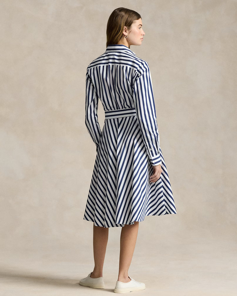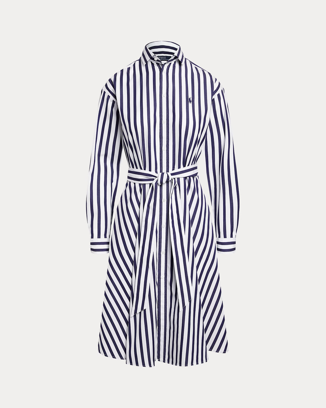 This striped cotton shirtdress is designed in an A-line silhouette and finished with our signature embroidered Pony on the left chest. A removable self-belt allows for versatility in styling and waist definition.