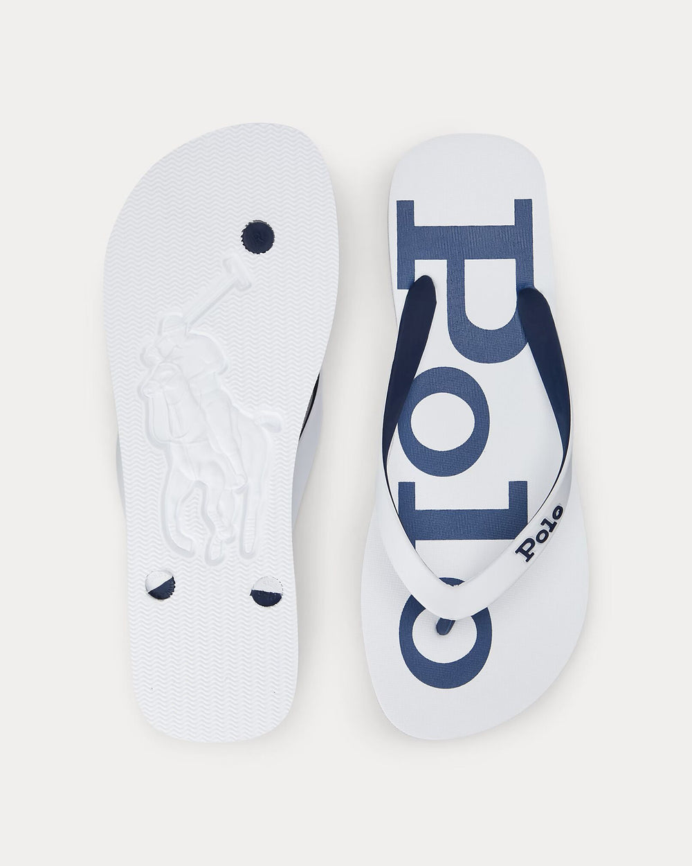 Ralph Lauren Bolt Logo Flip-Flop | White/Navy