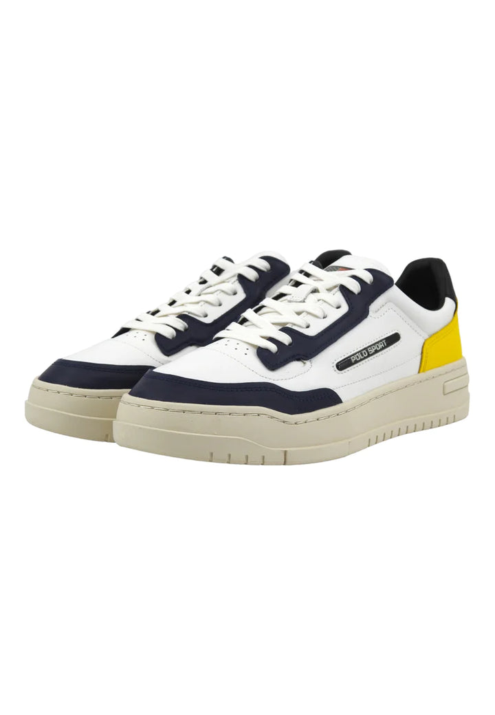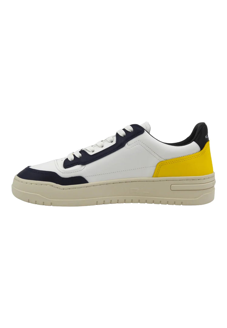 - Με το λευκό δερμάτινο επάνω μέρος και τα κίτρινα και μπλε μέρη, αυτά είναι άνετα αθλητικά παπούτσια για streetwear εμφάνιση.