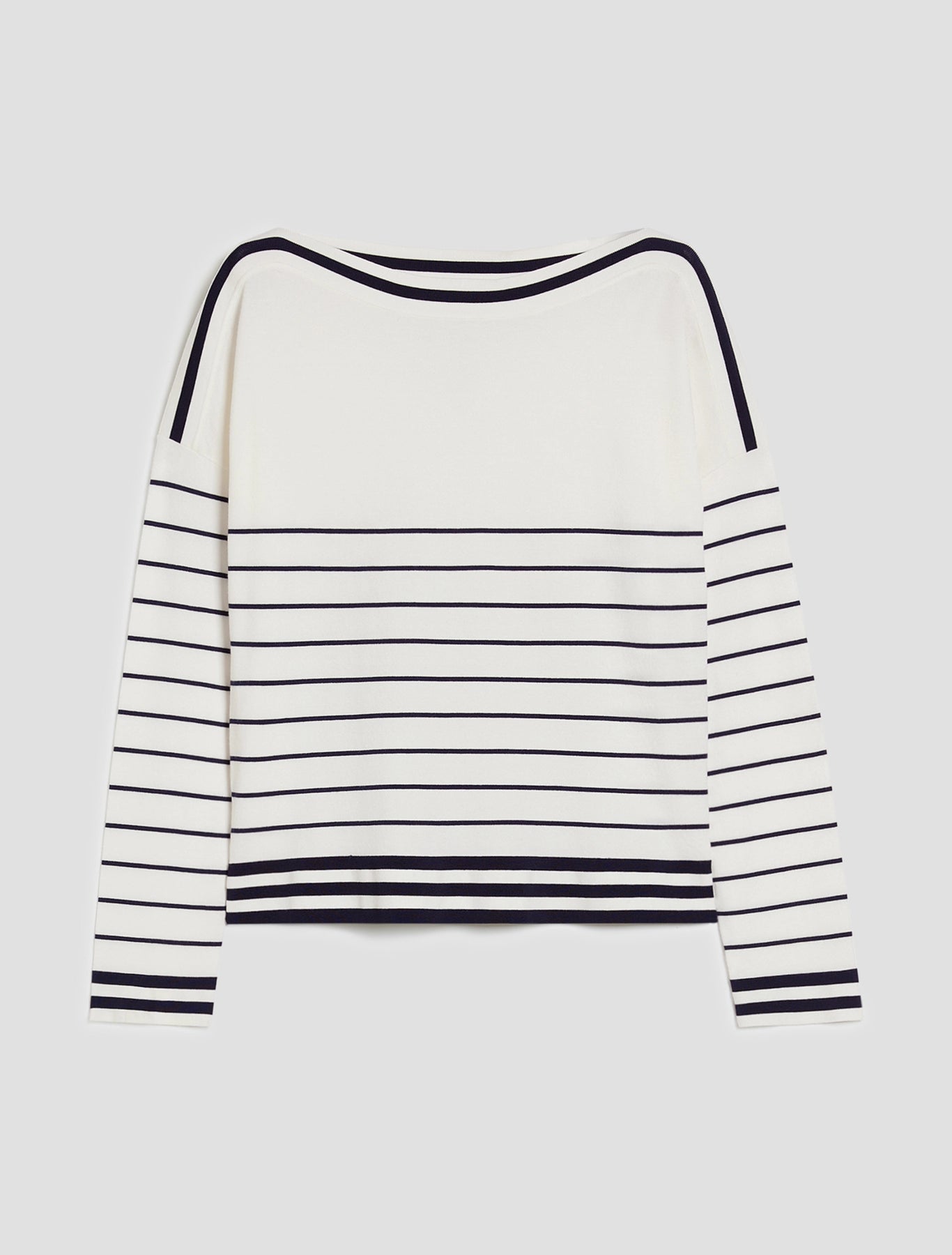 A new take on the classic sailor-stripe sweater: this figure-skimming model is embellished with sporty-feel trims to make it chicer than ever.