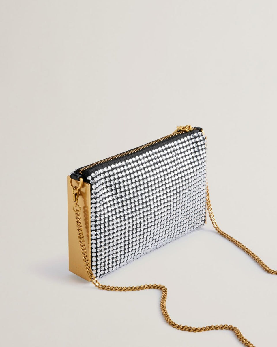 - Η τσάντα έχει διακοσμητικά από χρυσό στα πλαϊνά, μπροστά και πίσω έχουν κρυστάλλινη επιφάνεια.