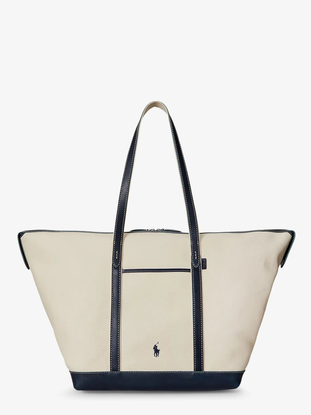 Ralph Lauren Bellport Leather-trimmed Canvas Tote Bag | Ecru/Navy