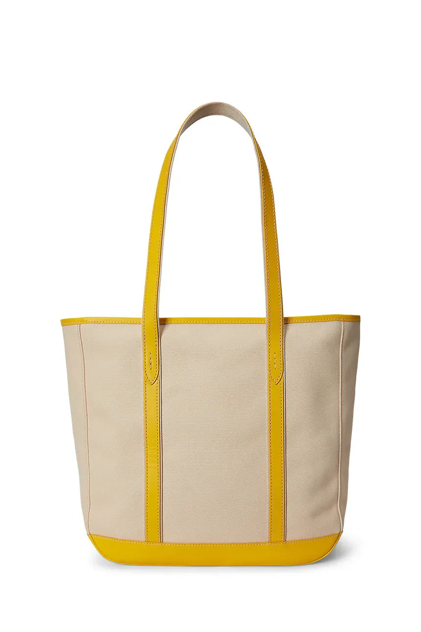 Ralph Lauren Leather-Trim Canvas Medium Shopper Tote Bag | Ecru/Yellow