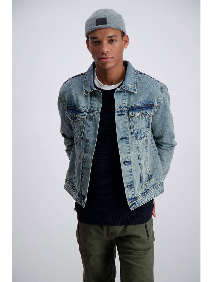 - Shine Original τζιν μπουφάν σε μονό σχέδιο. Υπάρχουν δύο τσέπες στο στήθος με κουμπιά και δύο ανοιχτές πλαϊνές τσέπες. Το μπουφάν είναι κατασκευασμένο από 100% βαμβάκι.