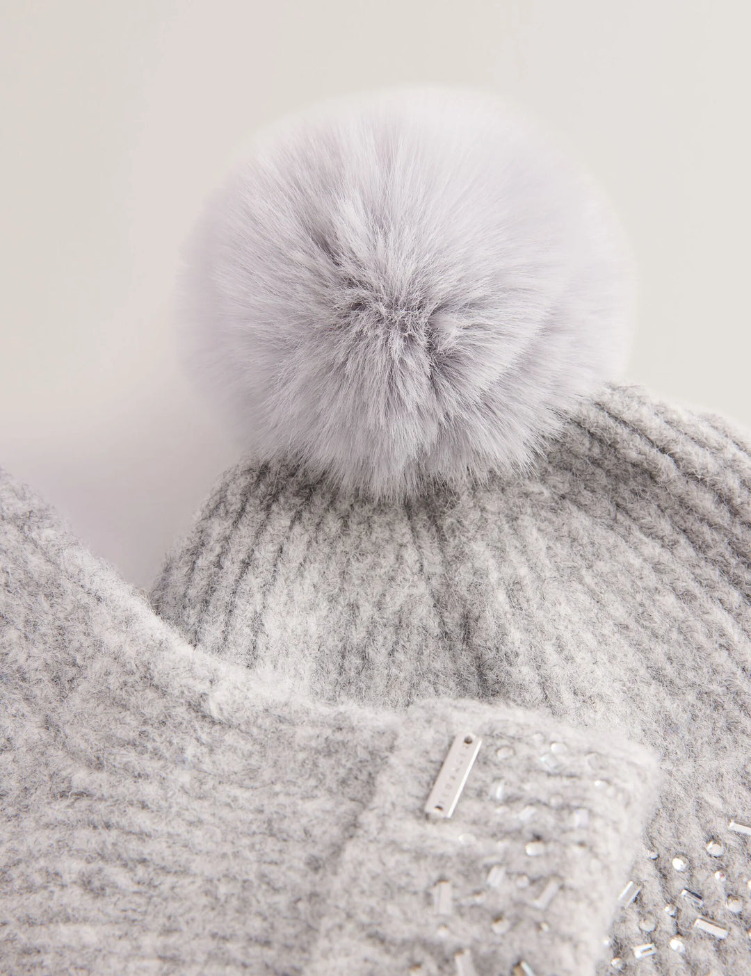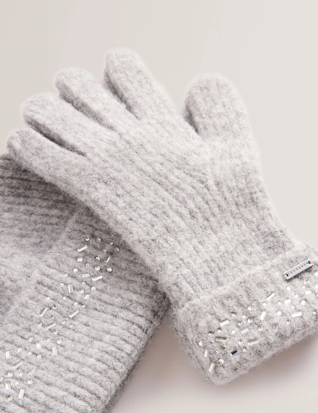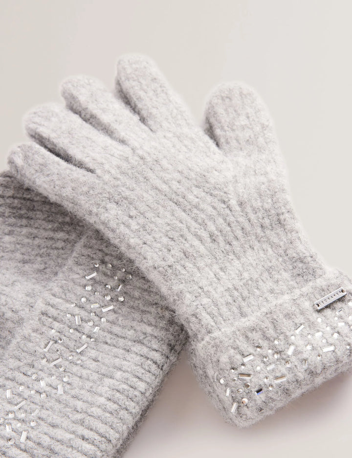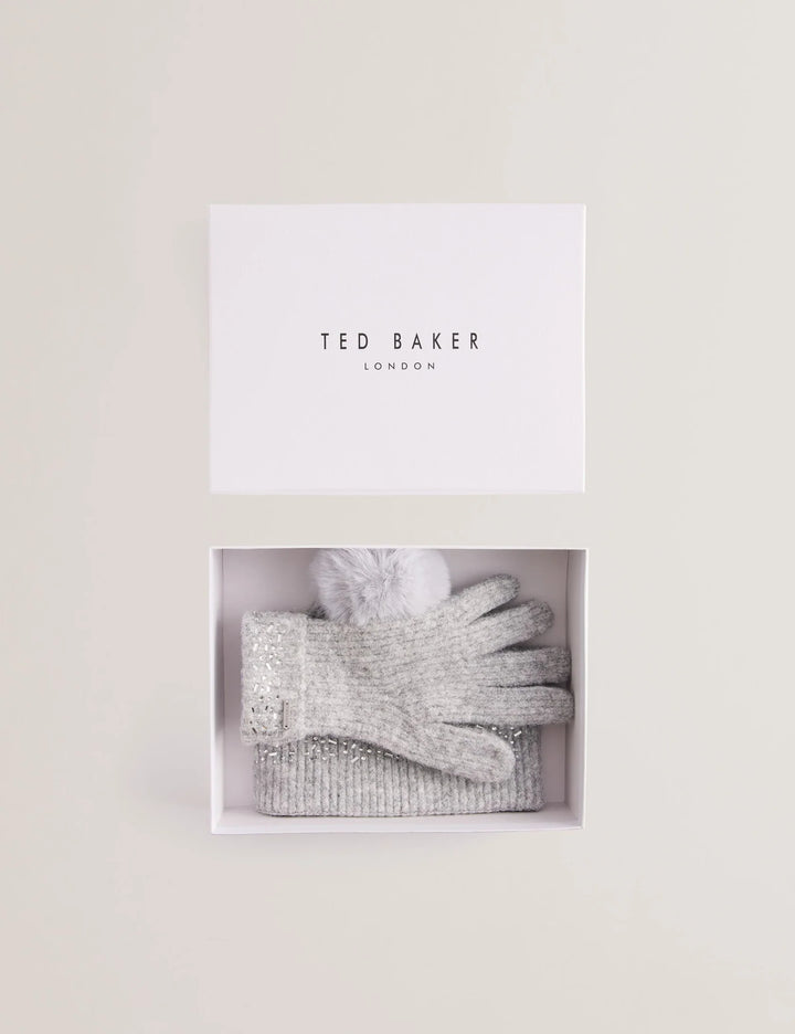Ted Baker Rhinestone Knitted Hat And Gloves Set | Grey