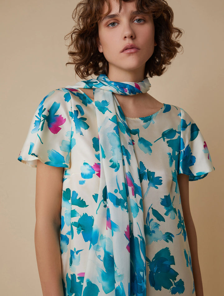 Stole in jacquard-knit shiny and matte pure silk fabric. Available in plain colours or with collection-patterned prints. Size: 180 x 67 cm.