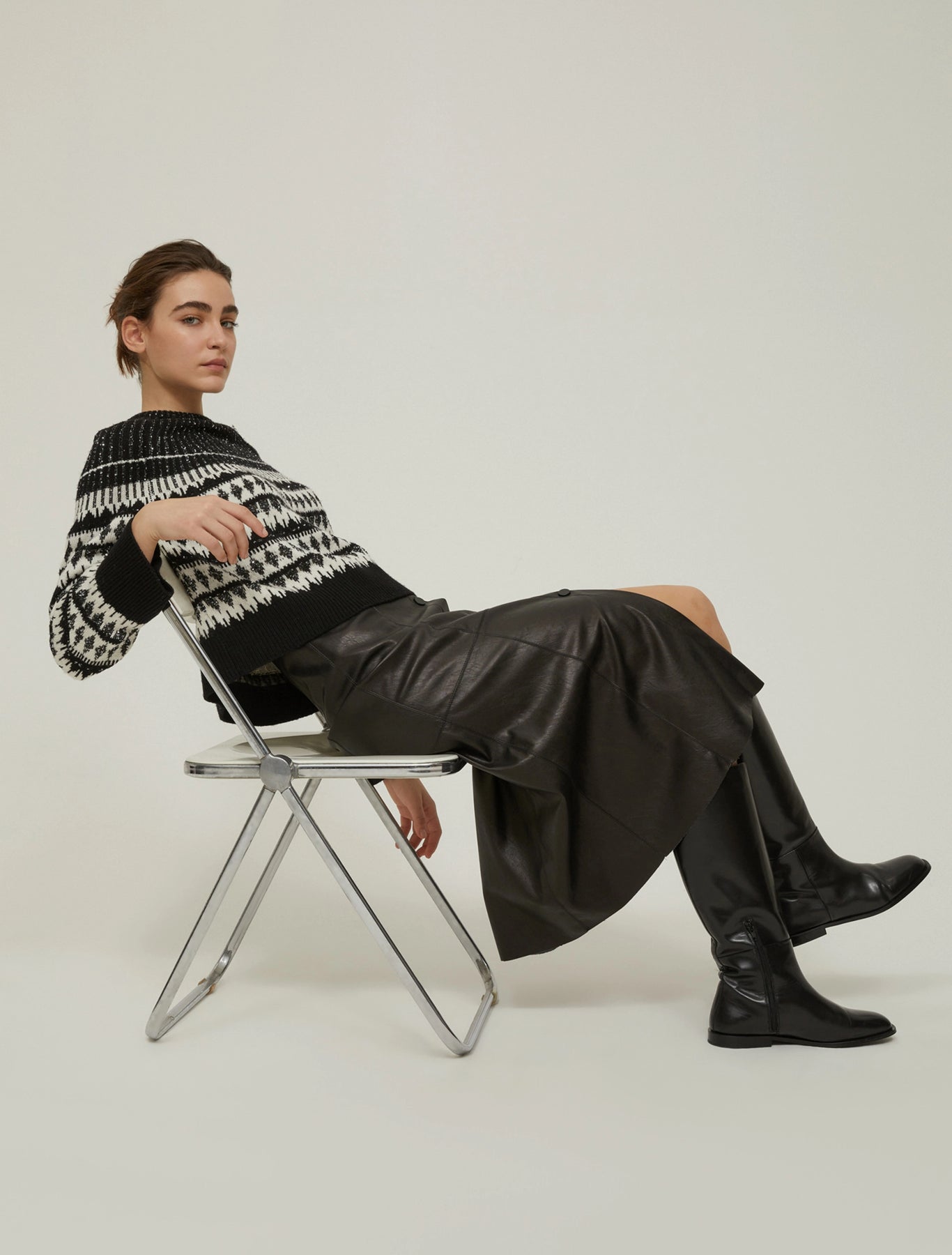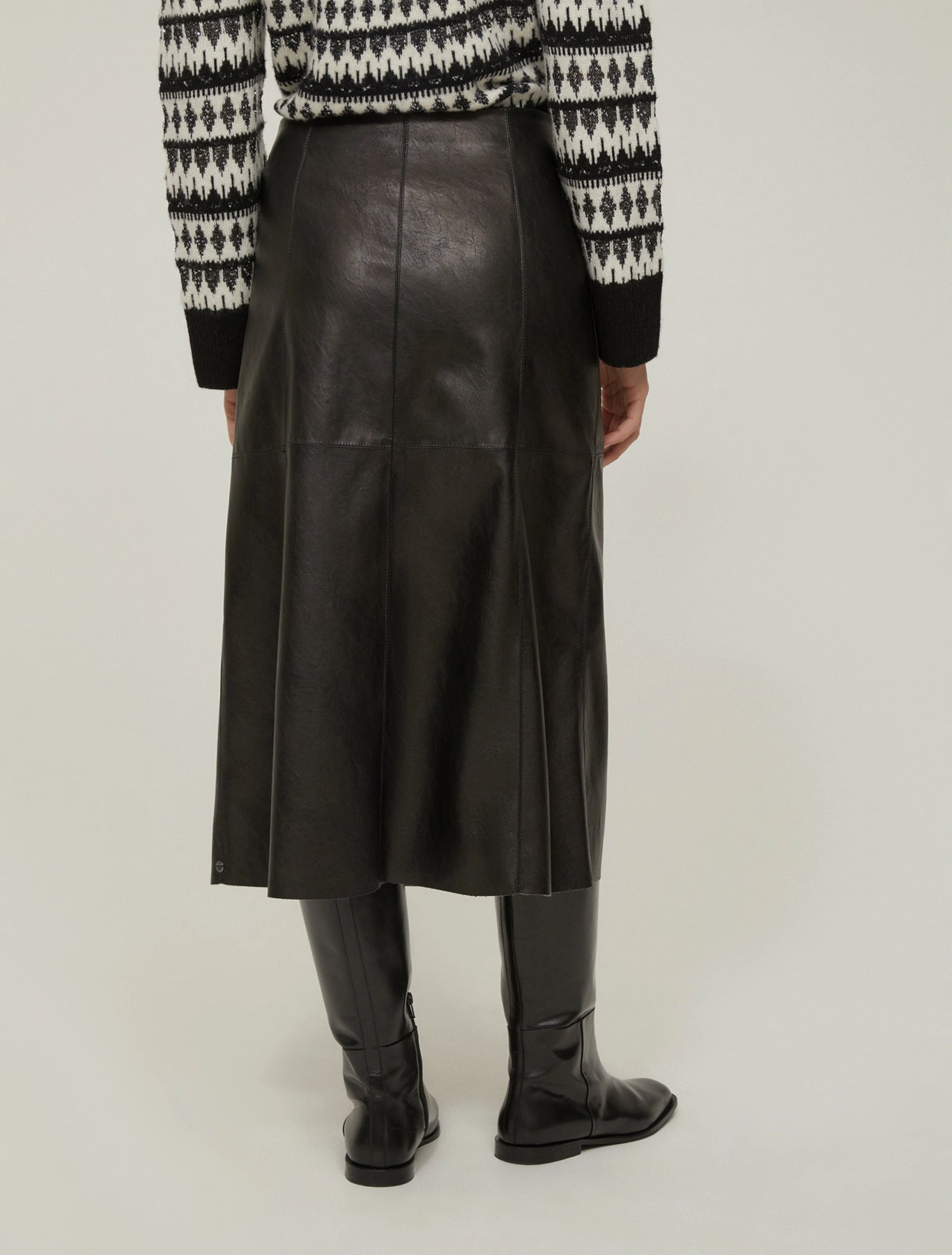 This midi skirt boasts a bon chic silhouette and gritty coated finish on the jersey fabric: a winning combination.