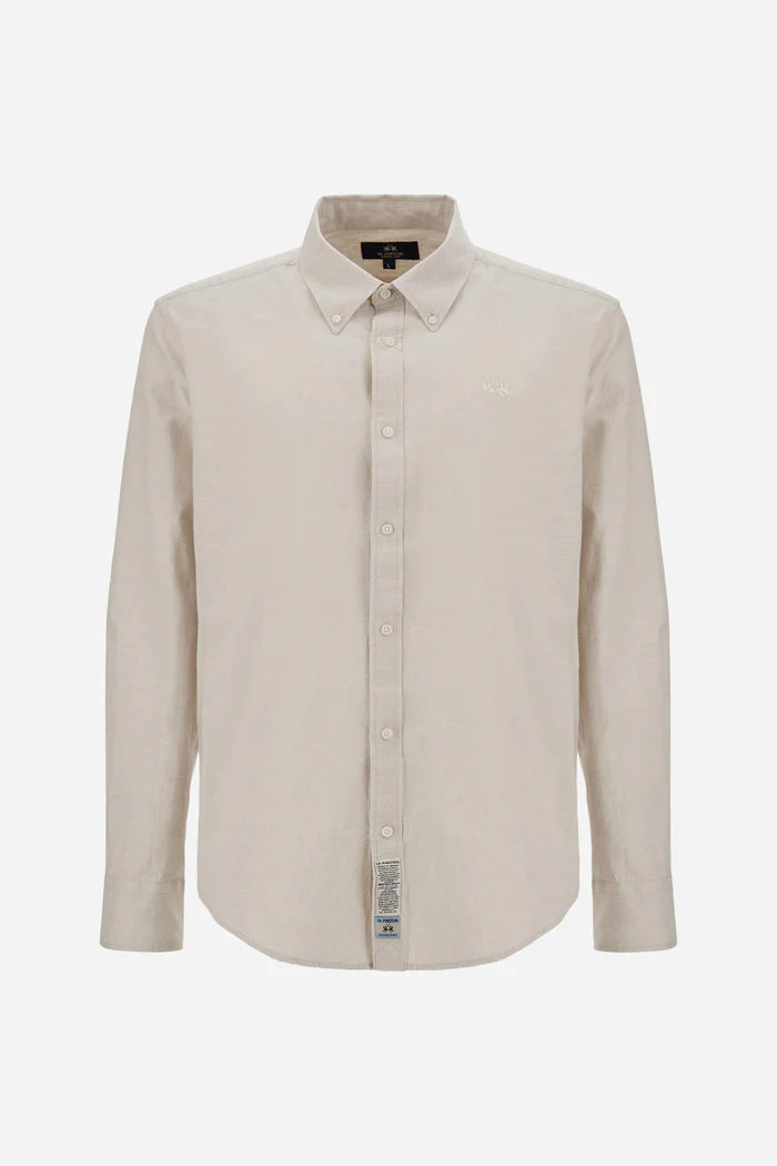 Ανδρικό πουκάμισο La Martina σε κανονική γραμμή από βαμβάκι και λινό με μικρό λογότυπο | Μπεζ