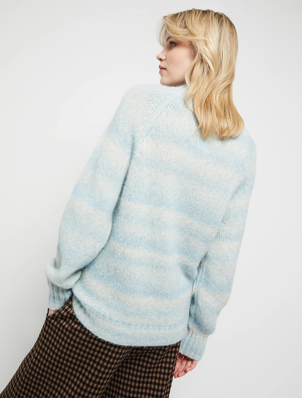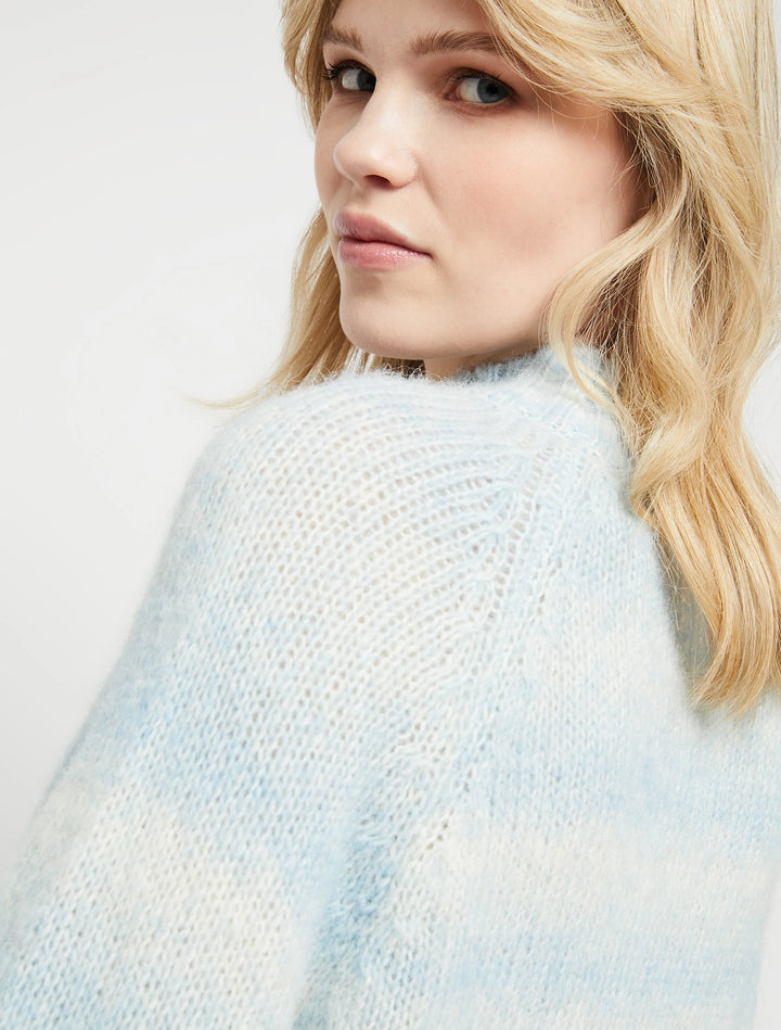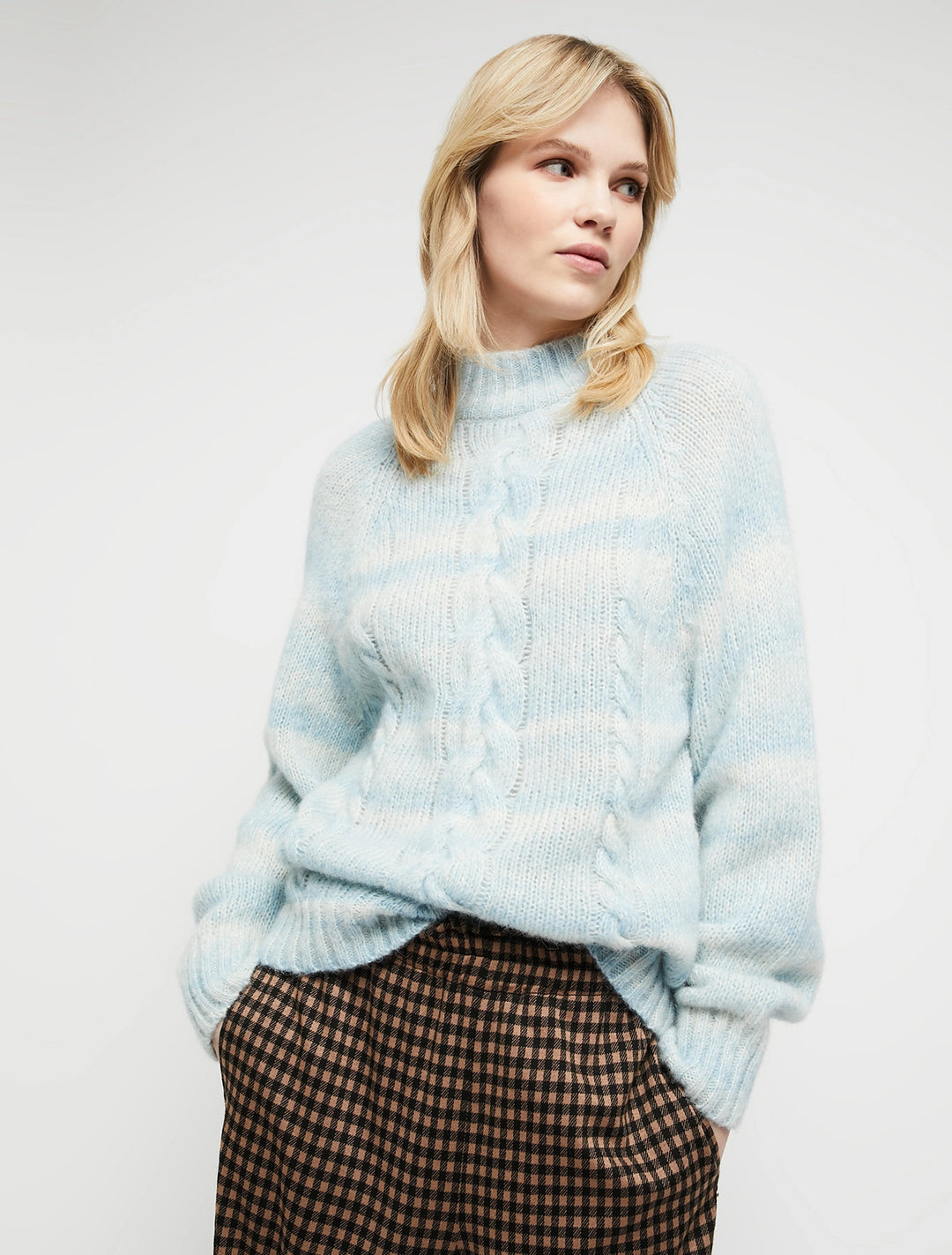 - Μαλακό, ζεστό και ελαφρύ πουλόβερ από εξαιρετικό λεπτό νήμα αλπακά και βαμβάκι με ντεγκραντέ αποτέλεσμα. Πλεξούδα στο μπροστινό μέρος, polo λαιμόκοψη και μανίκια reglan. Ένα must-have για τη χειμερινή γκαρνταρόμπα.