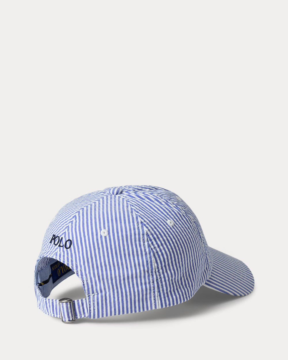 This classic ball cap unites breathable striped seersucker and Ralph Lauren's multicoloured signature embroidered Pony.