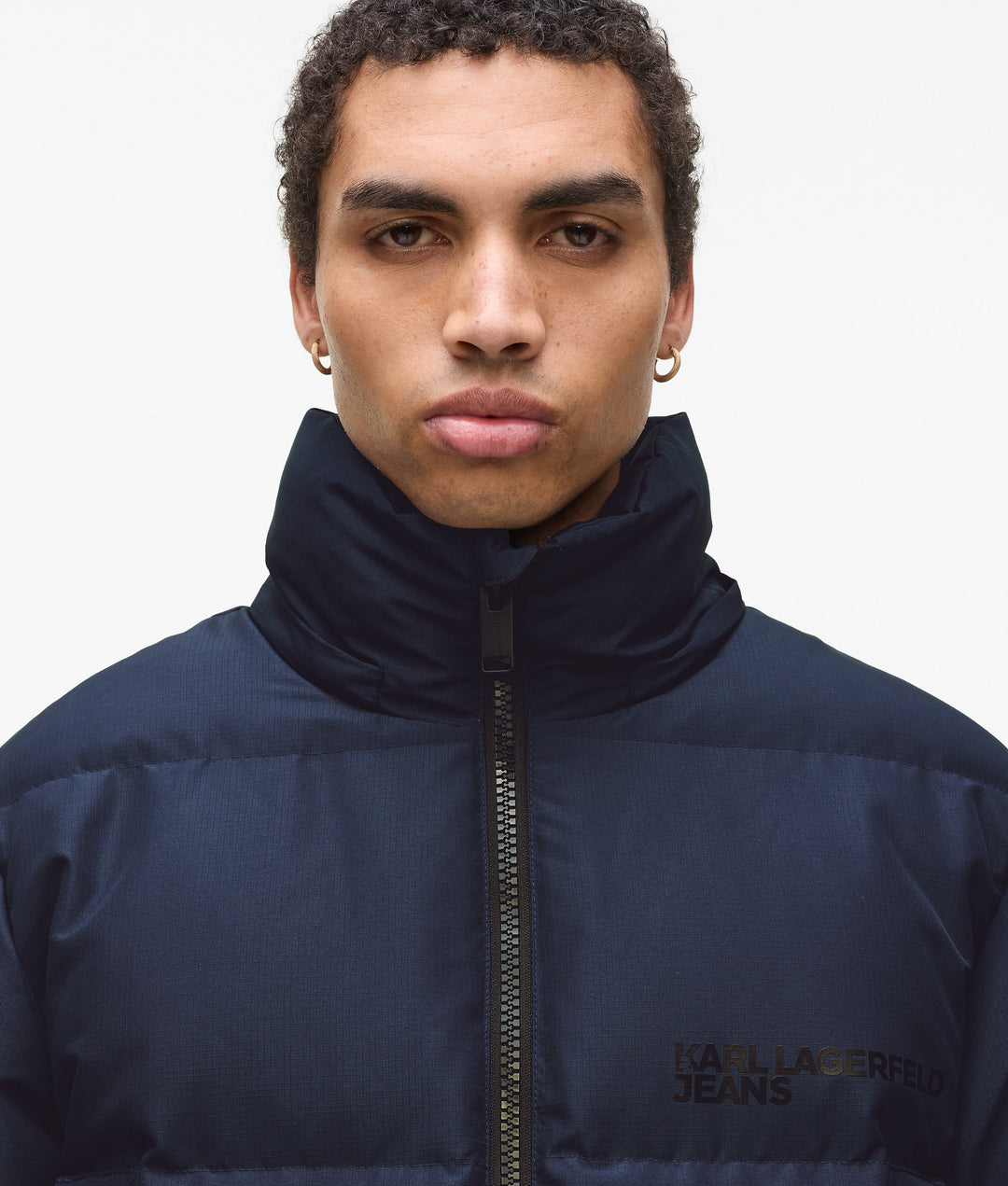Embrace a street-style aesthetic with this puffer jacket, featuring a zip front closure that leads to a high funnel neck and a detachable hood for versatile styling. Practical zipped side pockets add functionality, while the bold KARL LAGERFELD JEANS logo makes a striking statement.