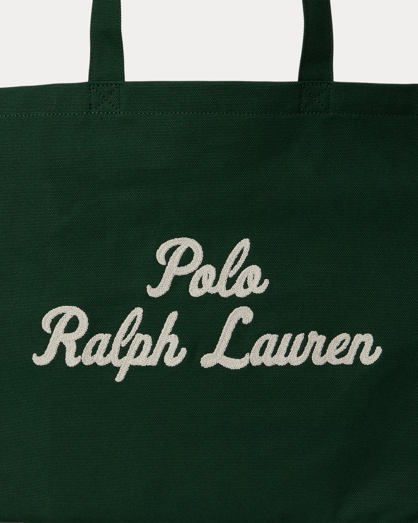 Crafted with durable cotton canvas, this spacious tote is distinguished by Ralph Lauren's signature chain-stitched script logo embroidery.