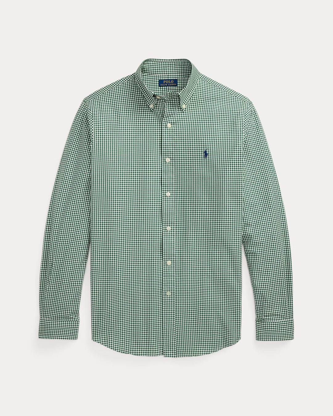 Button-down point collar. Buttoned placket. Long sleeves with buttoned barrel cuffs.