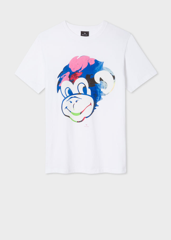 - Κατασκευασμένο από μαλακό βαμβακερό jersey, αυτό το λευκό t-shirt διαθέτει ένα μεγάλο «Marble Monkey Head» εκτύπωσης σε όλο το στήθος.