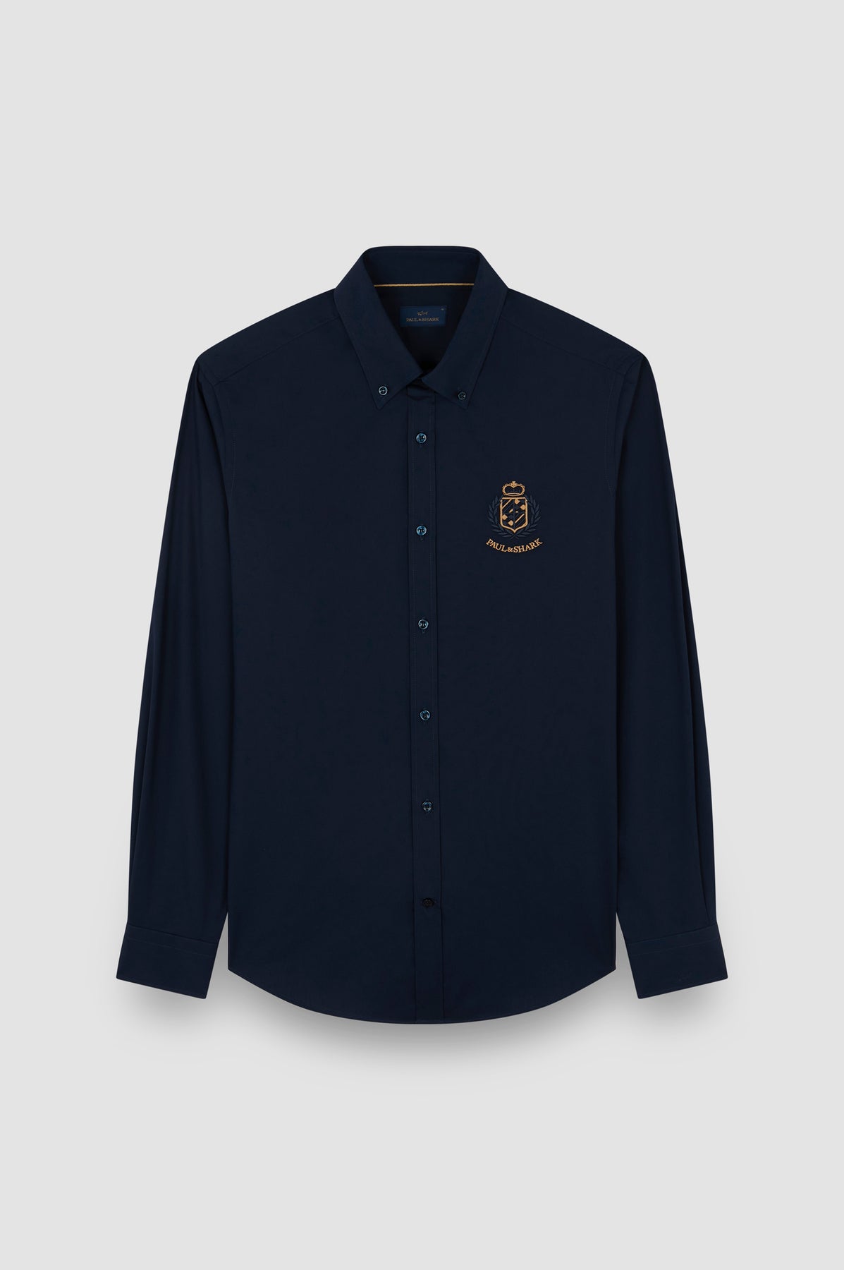 Paul & Shark Cotton Poplin Shirt with Heraldic Embrodery | Navy