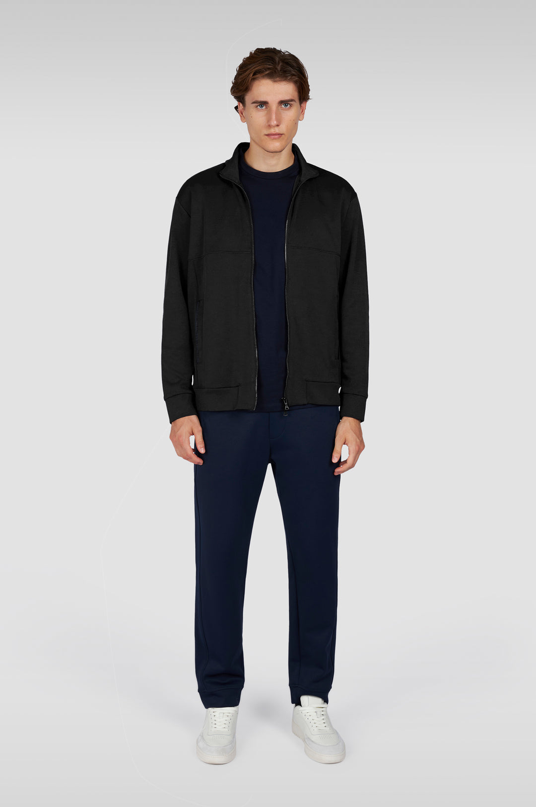 Paul & Shark Shark Badge Stretch Fleece Cotton Full Zip Sweatshirt | White