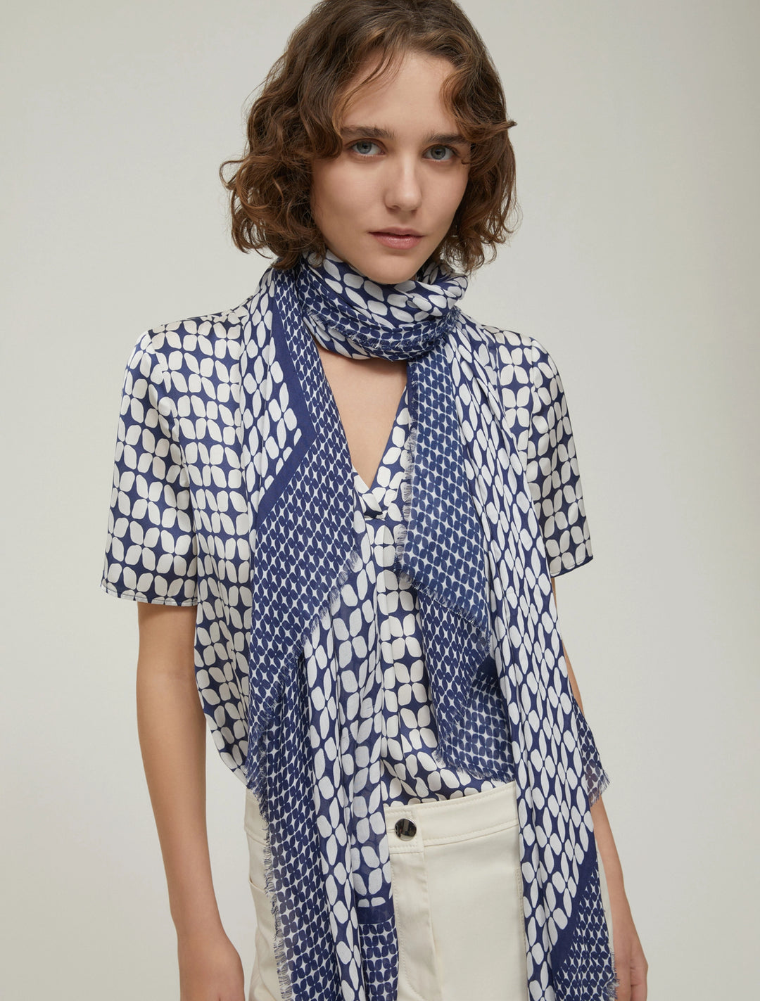 This light, flowing and ultra-soft modal stole will create a striking look when paired with the collection's matching-print garments and will reinvigorate the most essential outfits.
