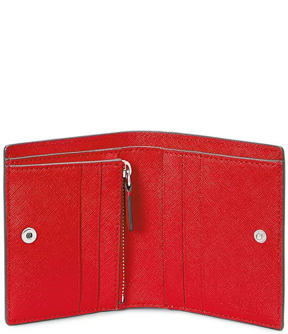 One slip pocket, one zip pocket and five credit card slots in the interior.