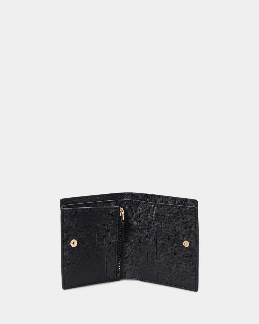 Crafted with crosshatch leather, this wallet features a compact, bi-fold design with multiple card slots and pockets. Polished "LRL" hardware at the front adds signature style.