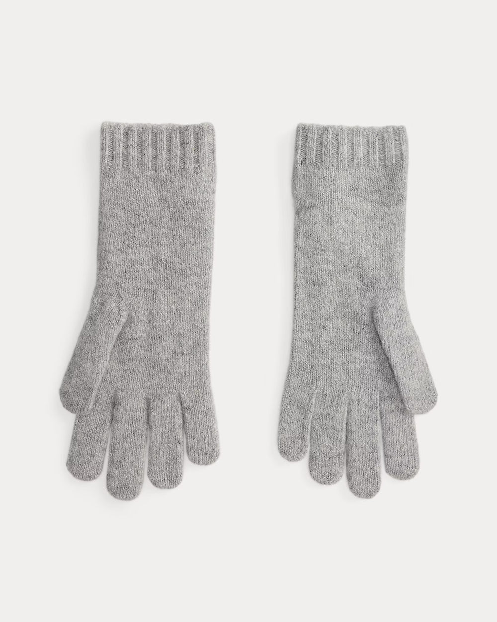 Ralph Lauren Cable-Knit Wool-Cashmere Gloves | Soft Grey
