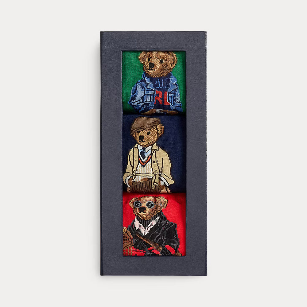 Ralph Lauren Polo Bear Trouser Sock 3-Pack Gift Set | Green/Navy/Red