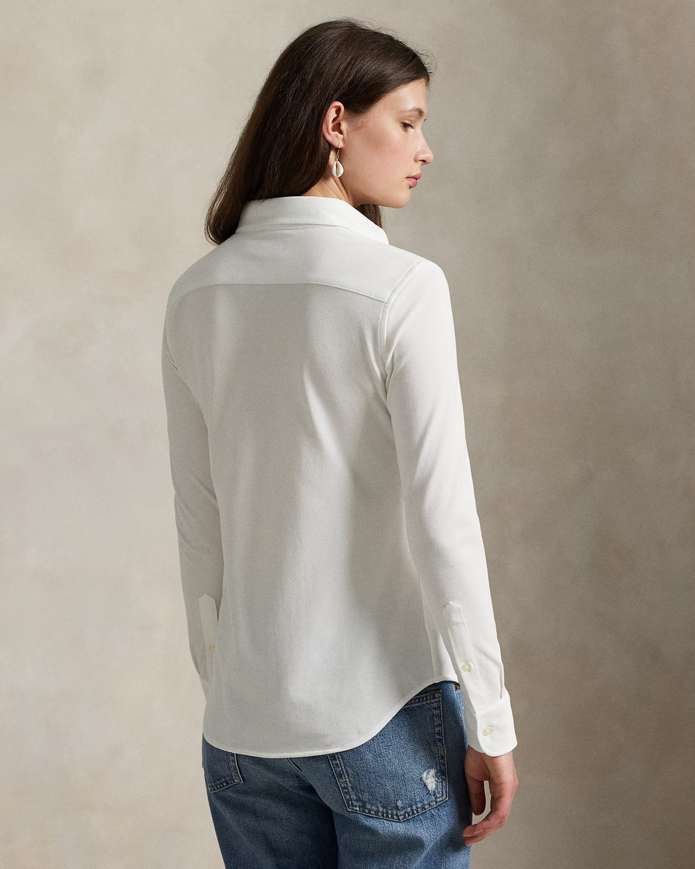 Ralph Lauren's first ever piece of women's clothing wasn't a dress or a coat. It was an oxford shirt, made in the same factory that produced his men's version, remade for a woman. Since that shirt's debut in 1971, Ralph Lauren has designed countless variations of his iconic shirt, and this slim-cut, breathable cotton piqué version combines the tailoring of a traditional oxford with the comfort and ease of a Polo shirt.
