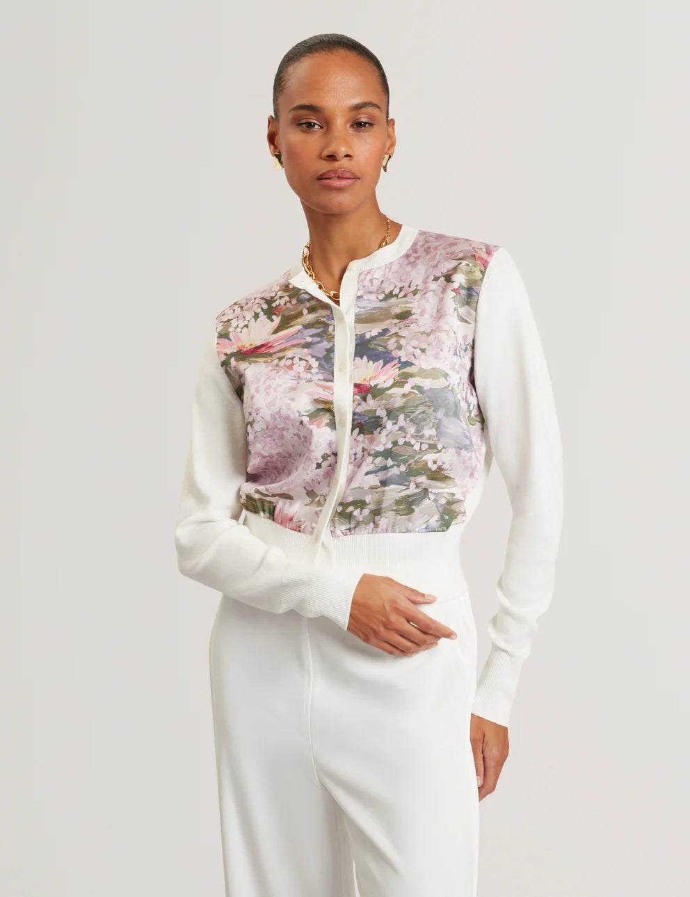 Ted Baker Sisilla Printed Woven Front Cardigan | Ivory