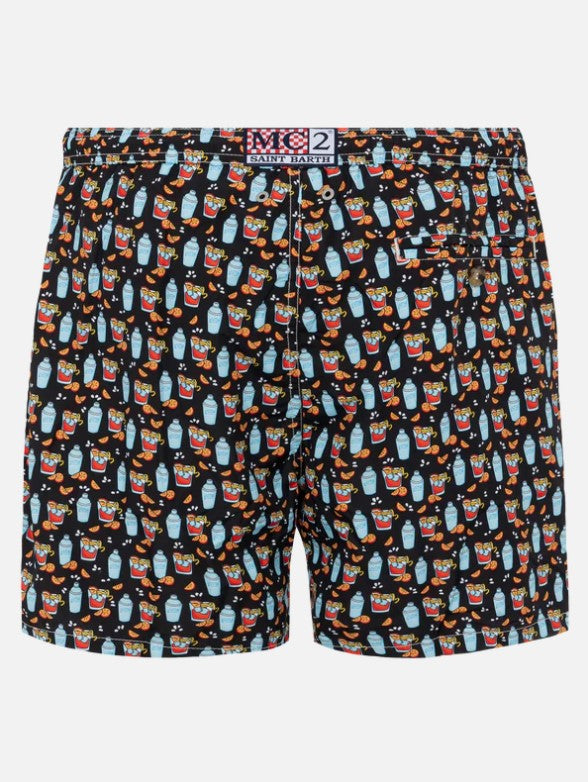 MC2 Saint Barth Lightweight Fabric Swim Shorts Lighting with Negroni Print | Black