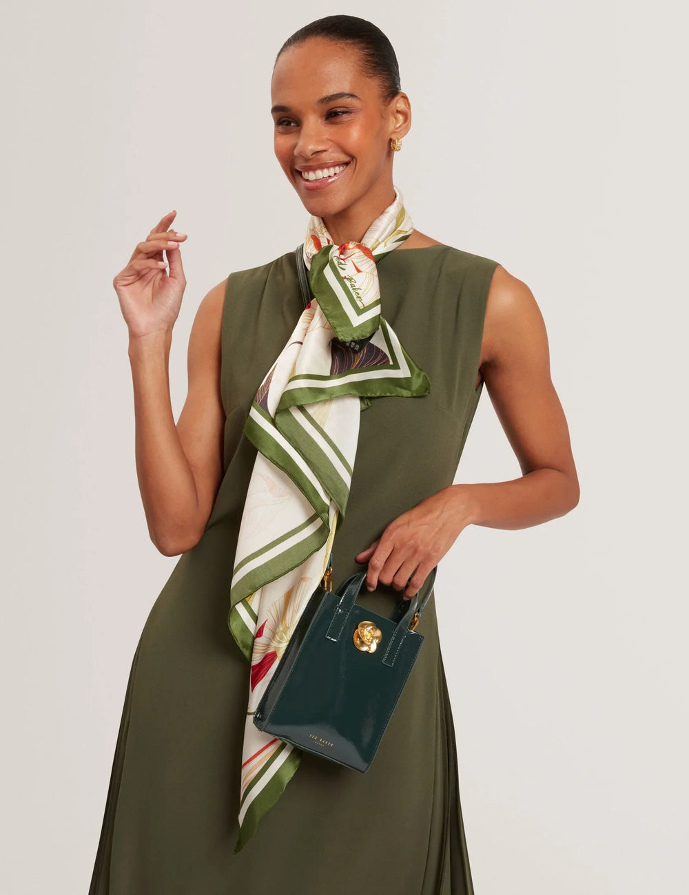Ted Baker Dennise Linear Rose Silk Square Scarf | Navy-