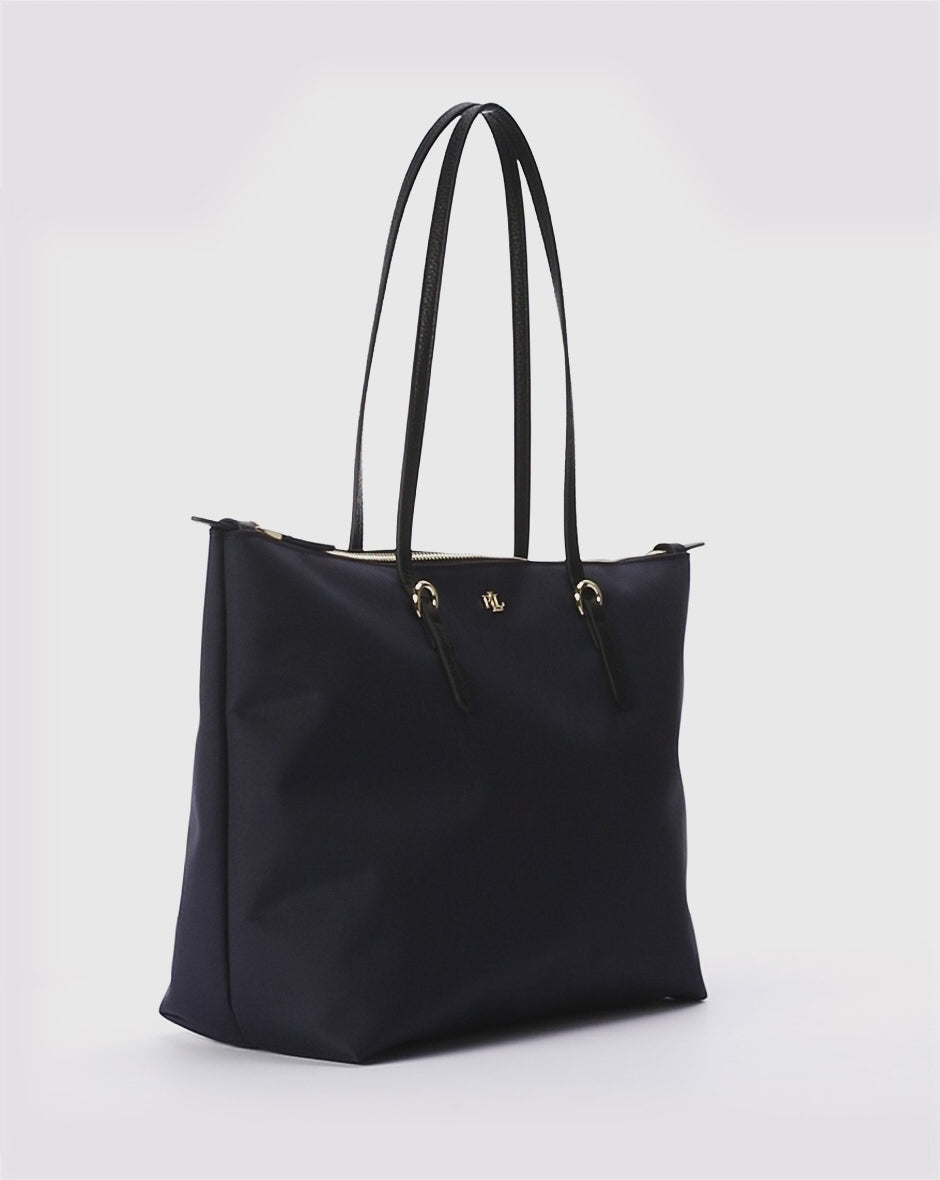 Crafted from durable nylon and designed with sumptuous faux-leather straps, the medium Keaton tote features a spacious silhouette — perfect for carrying the day's essentials. A versatile must-have, it's finished with an "LRL" metal logo on the front for signature style.