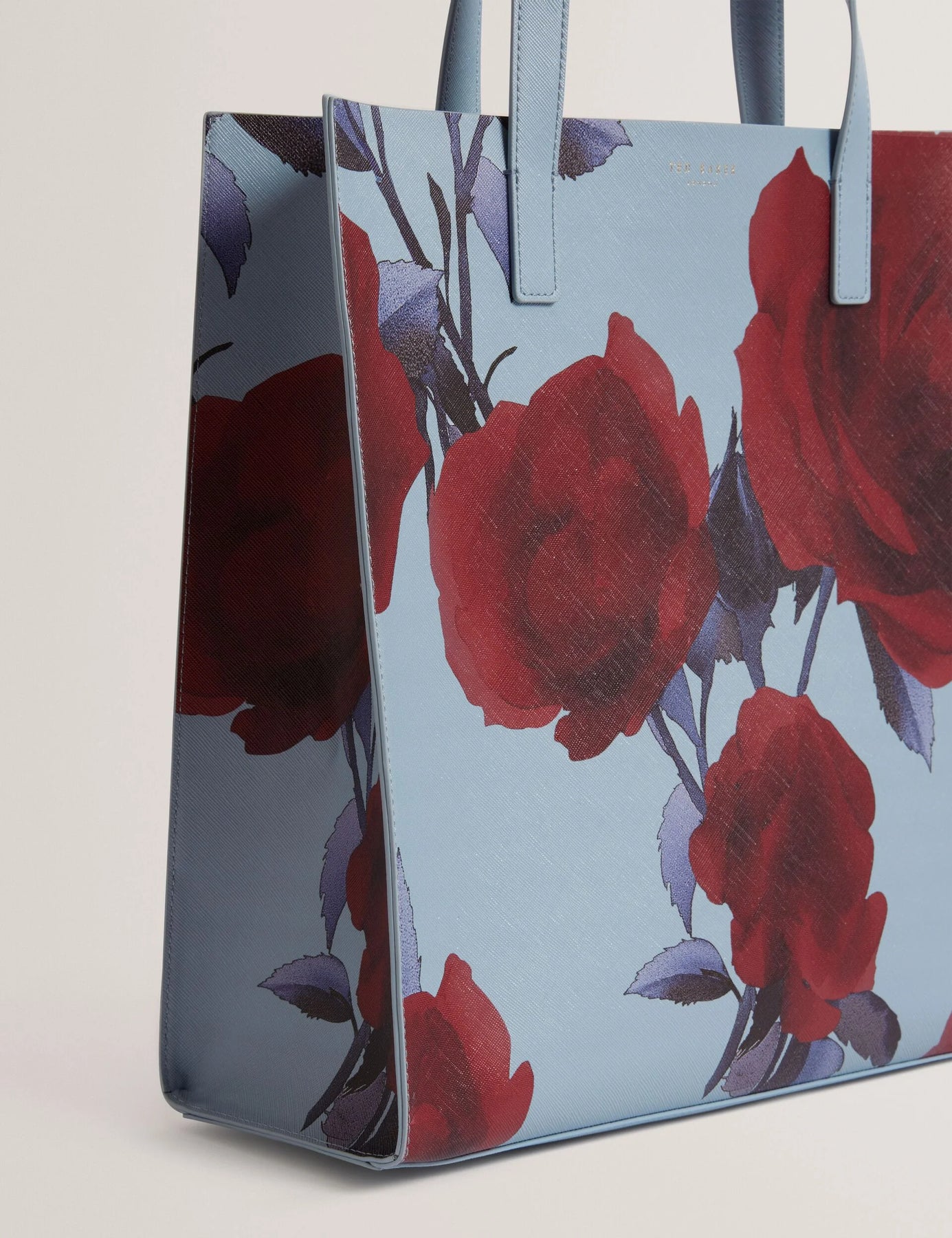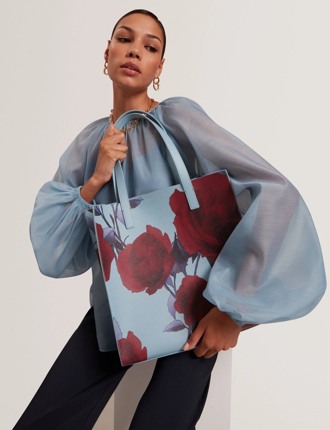 Our iconic tote bag design + a statement floral print = a style you can't resist. Blooming with deep red roses on a crosshatch PU leather, ELYZAA is the most elegant way to tote around your essentials.