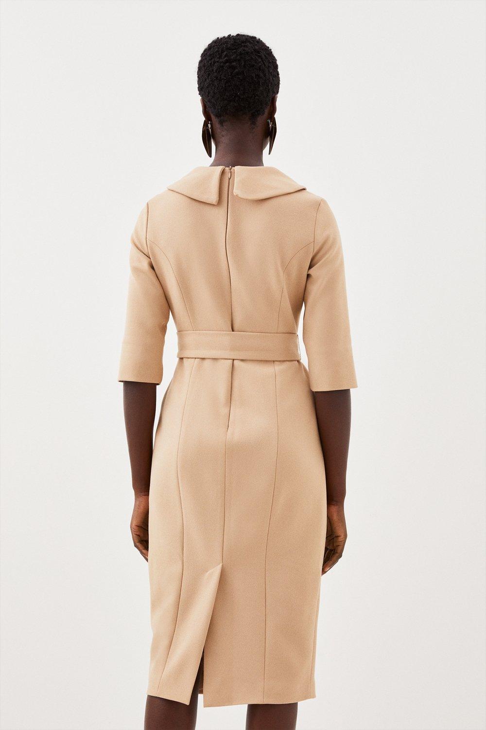 This Karen Millen tailored dress combines timeless elegance with contemporary design. The structured crepe fabric maintains its shape throughout the day, while the roll neck adds a touch of sophistication. Perfect for daytime engagements, style with block-heeled ankle boots and a structured tote for family gatherings or important meetings. The belted waist creates a flattering silhouette that works wonderfully for lunch dates or gallery visits. For cooler days, layer with a tailored blazer or lightweight trench coat. The versatile midi length pairs equally well with flats for a casual smart look or low heels when you need to transition from day to evening. This dress offers effortless style that requires minimal accessorising - simply add delicate jewellery to complete your look.