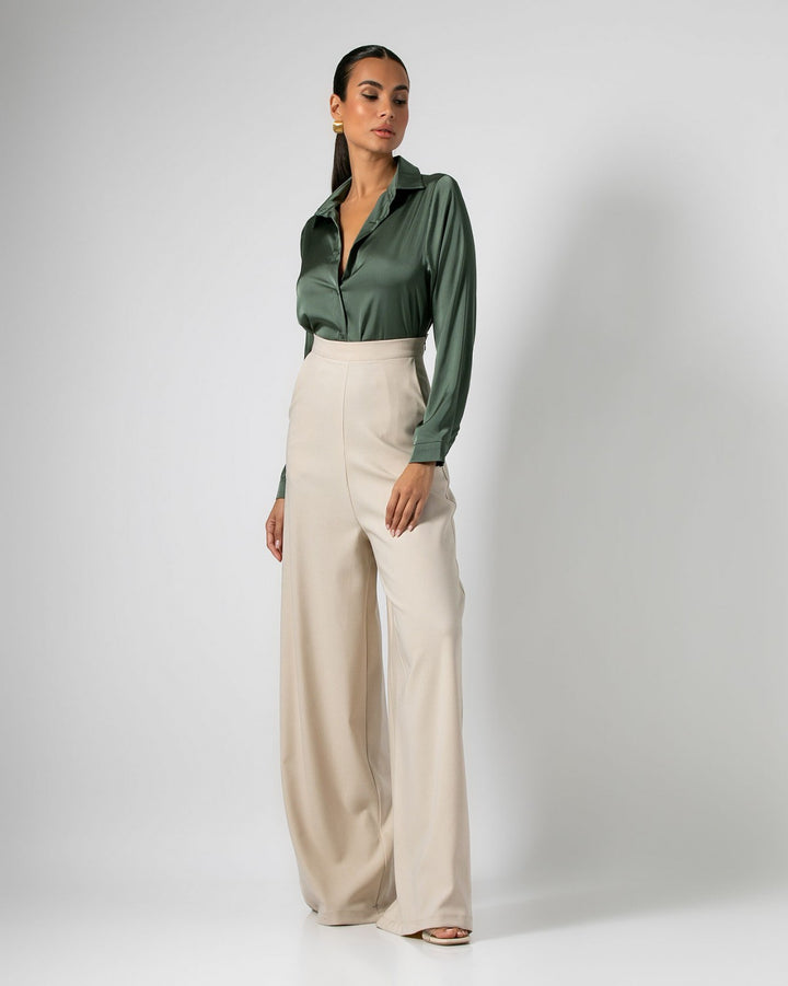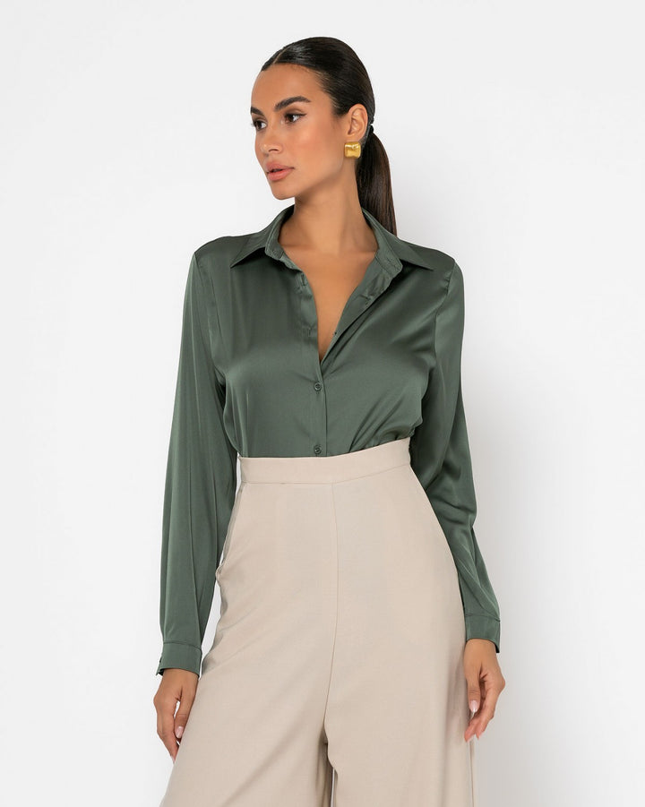 Never Needy Satin Shirt | Khaki