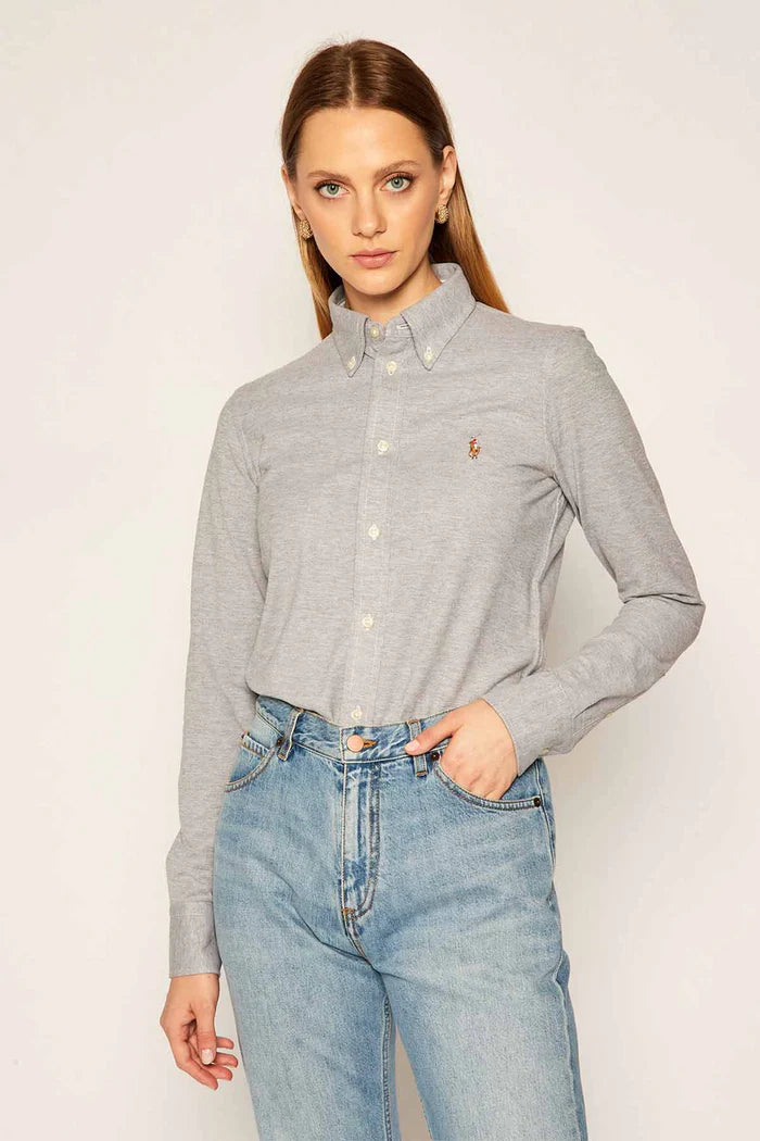 Ralph Lauren Slim Fit Knit Cotton Oxford Shirt | Boulder Grey