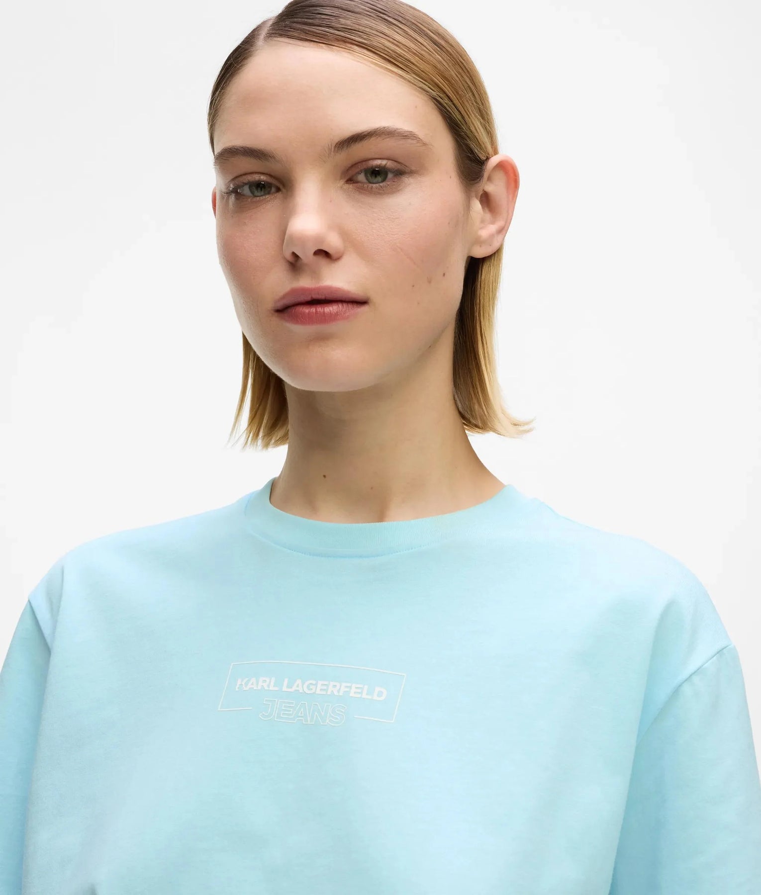 A casual staple transformed by iconic style. This classic crew-neck T-shirt is made from breezy cotton and topped with Karl Lagerfeld Jeans logo artwork at the chest.