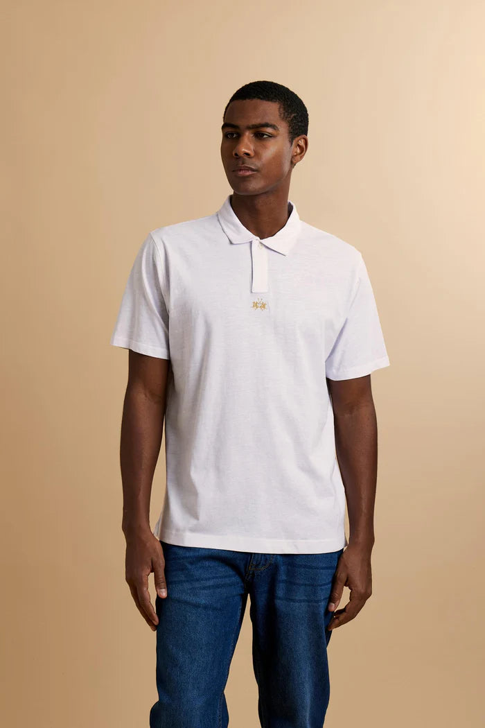 La Martina Men's Short Sleeve Polo in Stretch Piqué with Iconic Team Logo | Fandago Pink