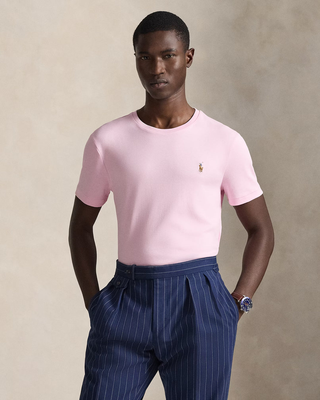 Ralph Lauren Custom Slim Fit Soft Cotton Interlock T-Shirt | Carmel Pink