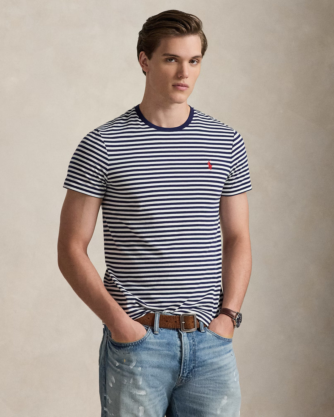 Ralph Lauren Custom Slim Fit Striped Jersey T-Shirt | Navy/White