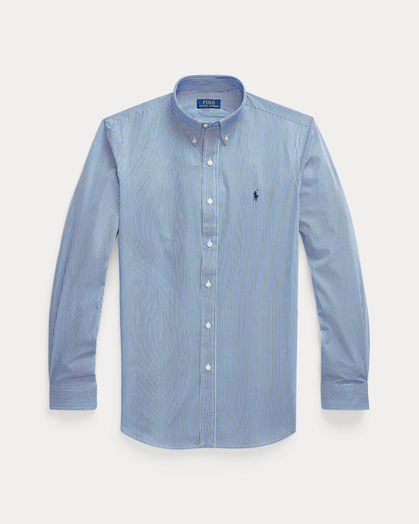 Button-down point collar. Buttoned placket. Long sleeves with buttoned barrel cuffs.