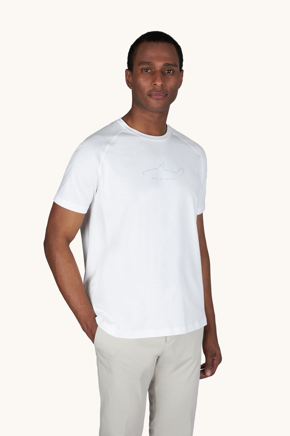Perfect for outdoor adventures and relaxed weekend looks, this T-shirt is crafted from soft, exceptionally breathable pure cotton jersey. Its classic silhouette features a crew neck and short sleeves that naturally flex to your every move. But setting it apart from the rest is tonal embroidery: a reinterpretation of our iconic shark detail and signature Paul & Shark lettering.