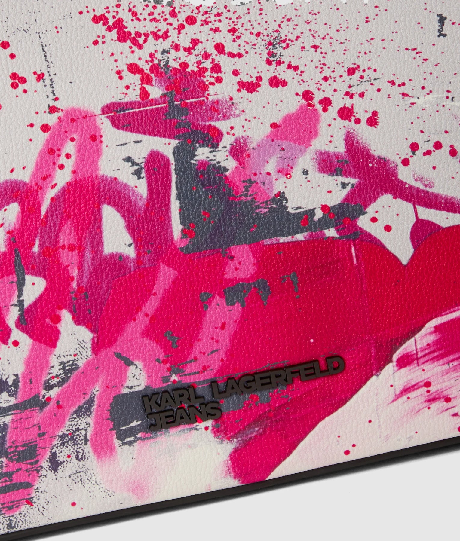 Bold all-over graffiti print with KARL LAGERFELD JEANS metal logo at the front