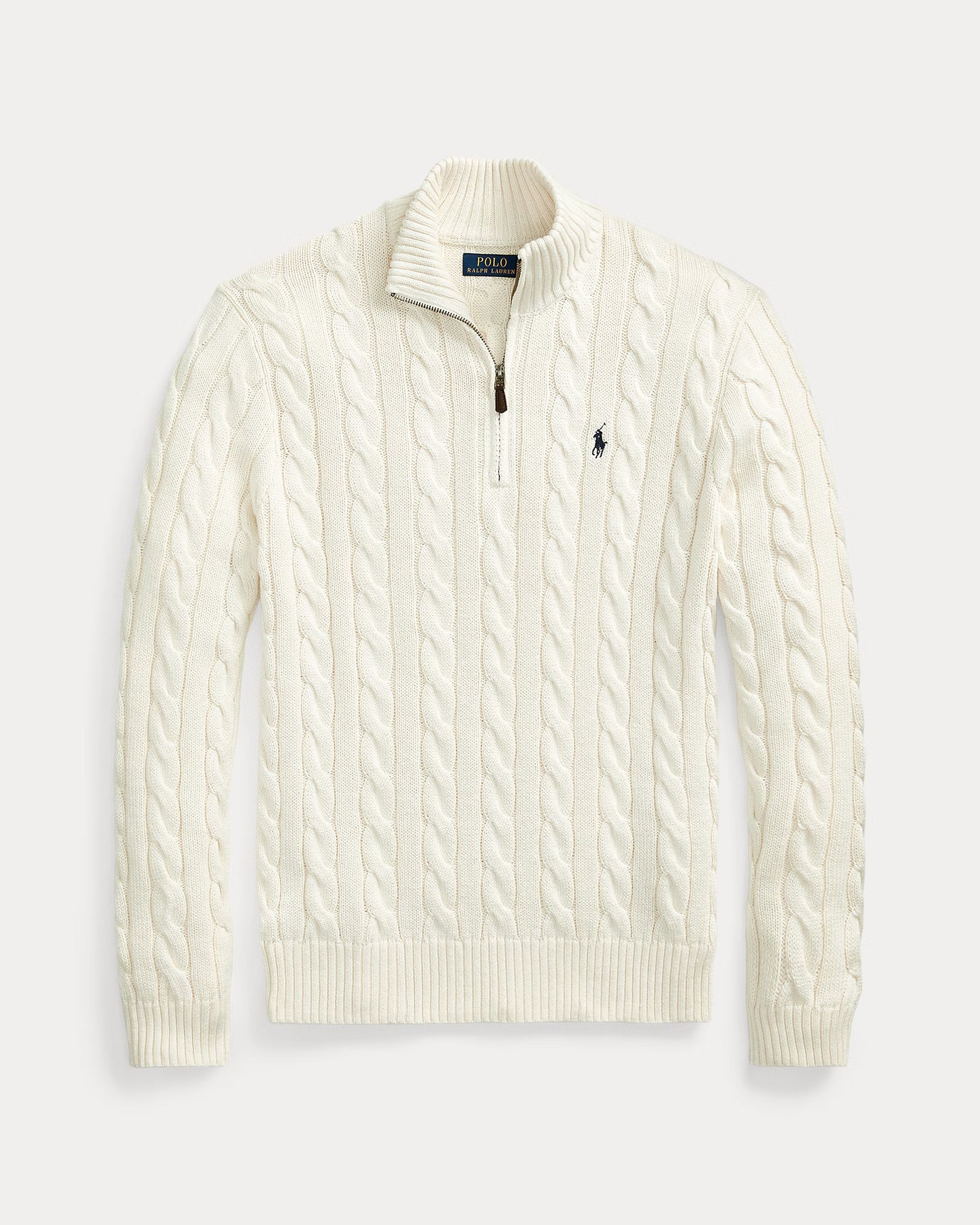 This chunky-knit cotton layer features our iconic cable design and signature embroidered Pony.
