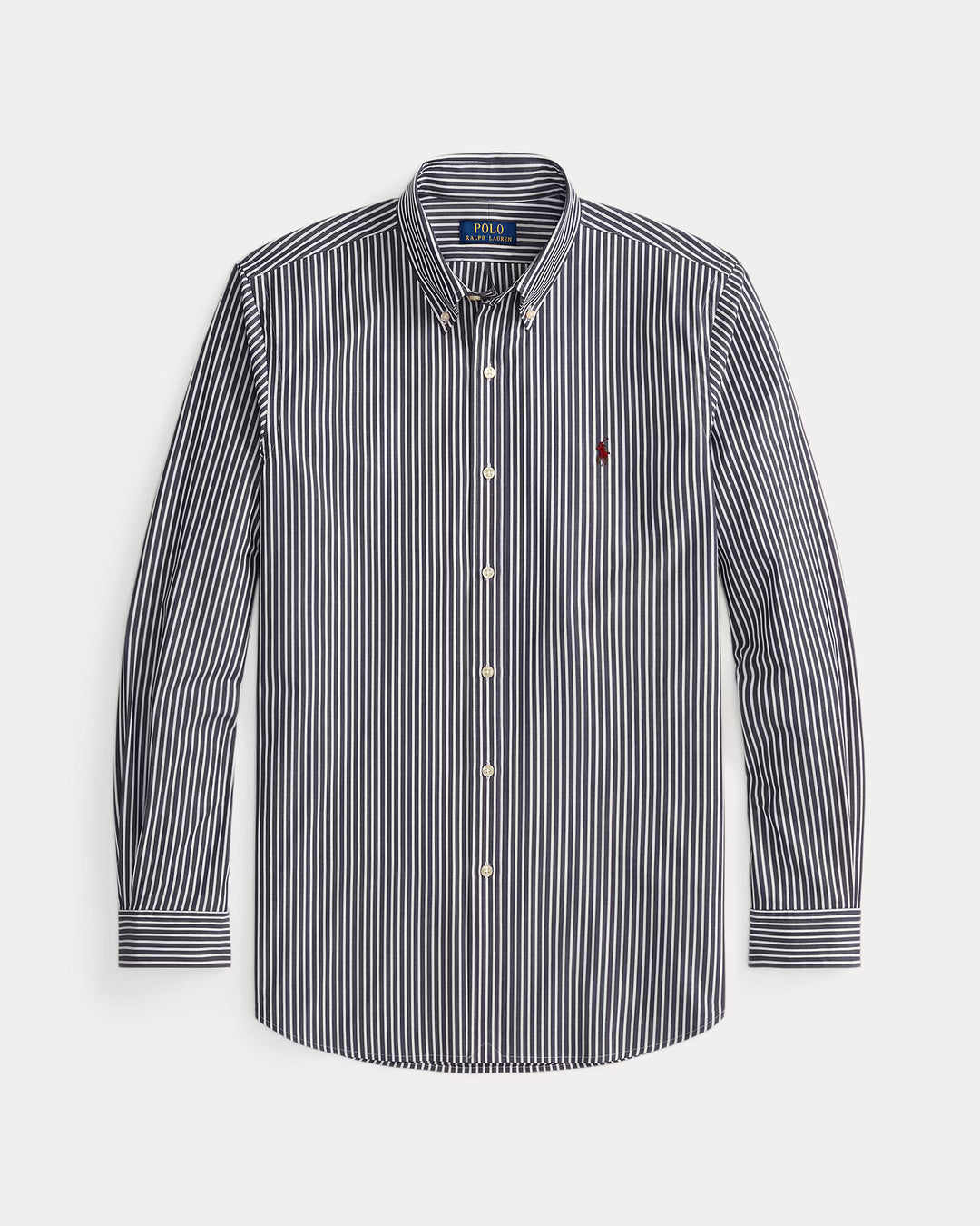 Button-down point collar. Buttoned placket. Long sleeves with buttoned barrel cuffs.