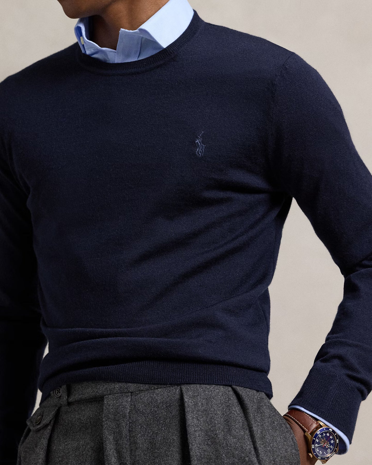 Finished with our signature embroidered Pony, this lightweight jumper is finely knit with wool yarn from Italy that is Machine washable and worsted for a smooth texture.
